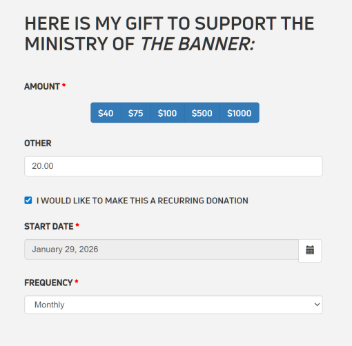 Recurring donations are the foundation of The Banner’s sustainability. While one-time gifts help us today, monthly support allows us to plan for tomorrow. By spreading your gift throughout the year, you provide a predictable “foundation” that ensures The Banner remains a free, high-quality resource for every household in the CRCNA.